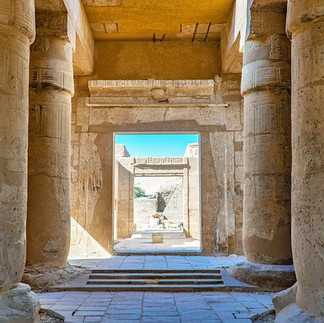 Like all Egyptian temples, it comprises the chapels of the deities, with their vestibules and subsidiary chambers; a large Hypostyle Hall; and an open Peristyle Court, which was approached from the north by a great colonnade.